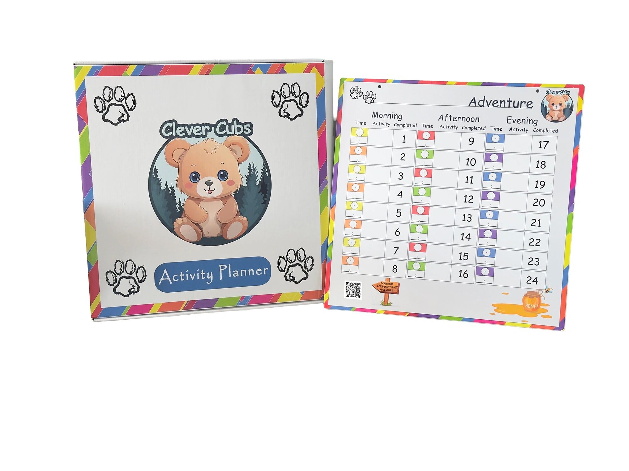 Magnetic daily planner with 40+ activity tiles and QR code-linked animated videos featuring Benny the Bear Cub to make routines engaging and fun